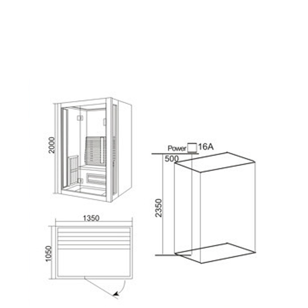 * Kiểu dáng: Phòng xông hơi khô hồng ngoại hình chữ nhật lắp áp tường